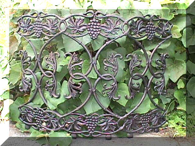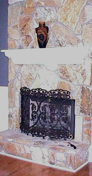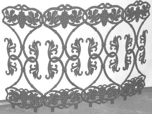The ornate scrolls on this fireplace screen are crafted of cast aluminum.