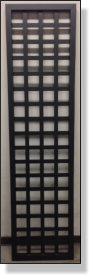 74" high x 35.5" wide aluminum Flat/slat trellis with 2" frame and 1.5" slats with 4" spacing