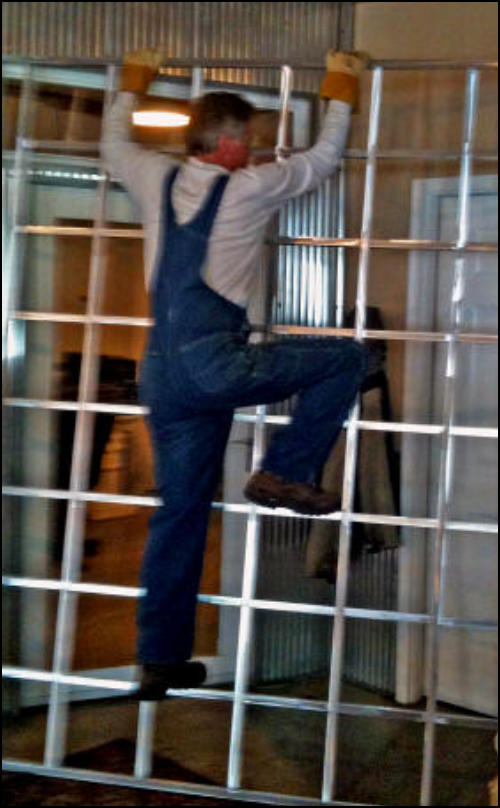 200 lb Welder scales grid trellis and both are undamaged!!